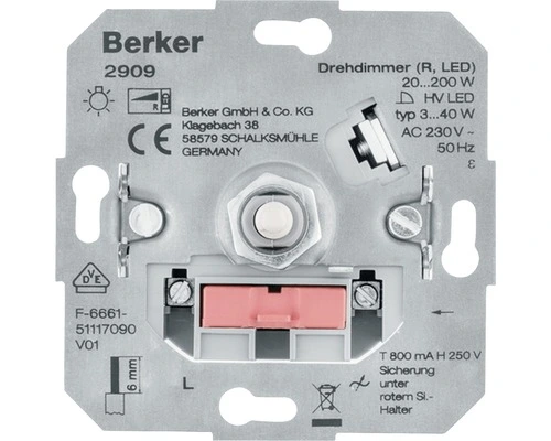 BERKER Dimmer Inbouwelement 2909 Universeel Draai-uit (halogeen 20-200 W)