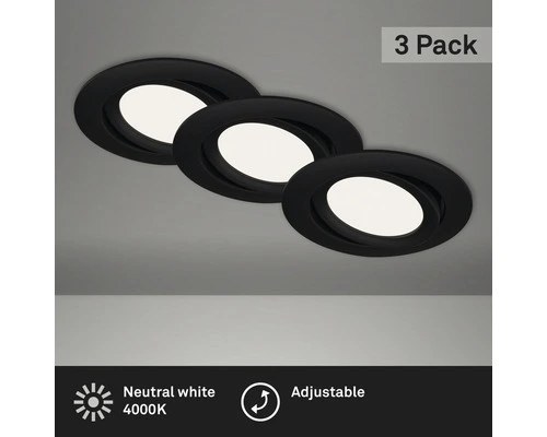 BRILONER LED Inbouwspot Set 7114 Ø 106 Mm Zwart, 3 Stuks
