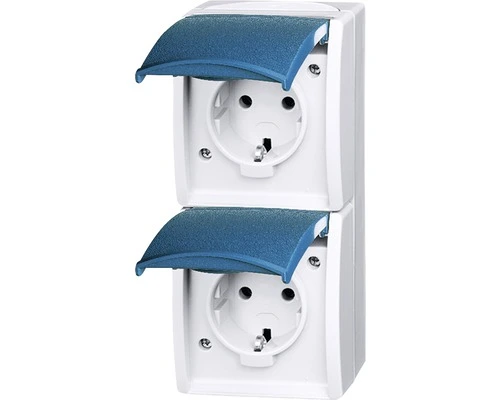 BUSCH-JAEGER Wandcontactdoos Ocean Dubbel Opbouw IP44 Lichtgrijs/blauwgroen Spatwaterdicht
