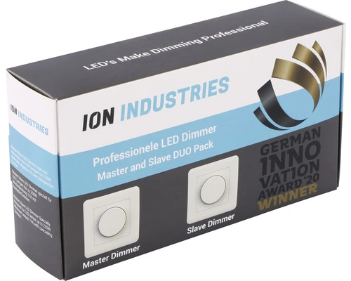 Deze dimmer heeft de prestigieuze German Innovation Award 2020 gewonnen en is daarmee een erkend product in Duitsland. Wat onze dimmer zo uniek maakt, naast de hotelschakeling, is onder andere, geruisloos dimmen, stabiel dimmen bij laag wattage en het instellen van de dimmer op zowel hoog als laag licht niveau.