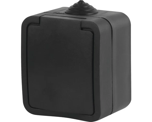Q-LINK Opbouw Wandcontactdoos 1-voudig RA IP54 Zwart Spatwaterdicht